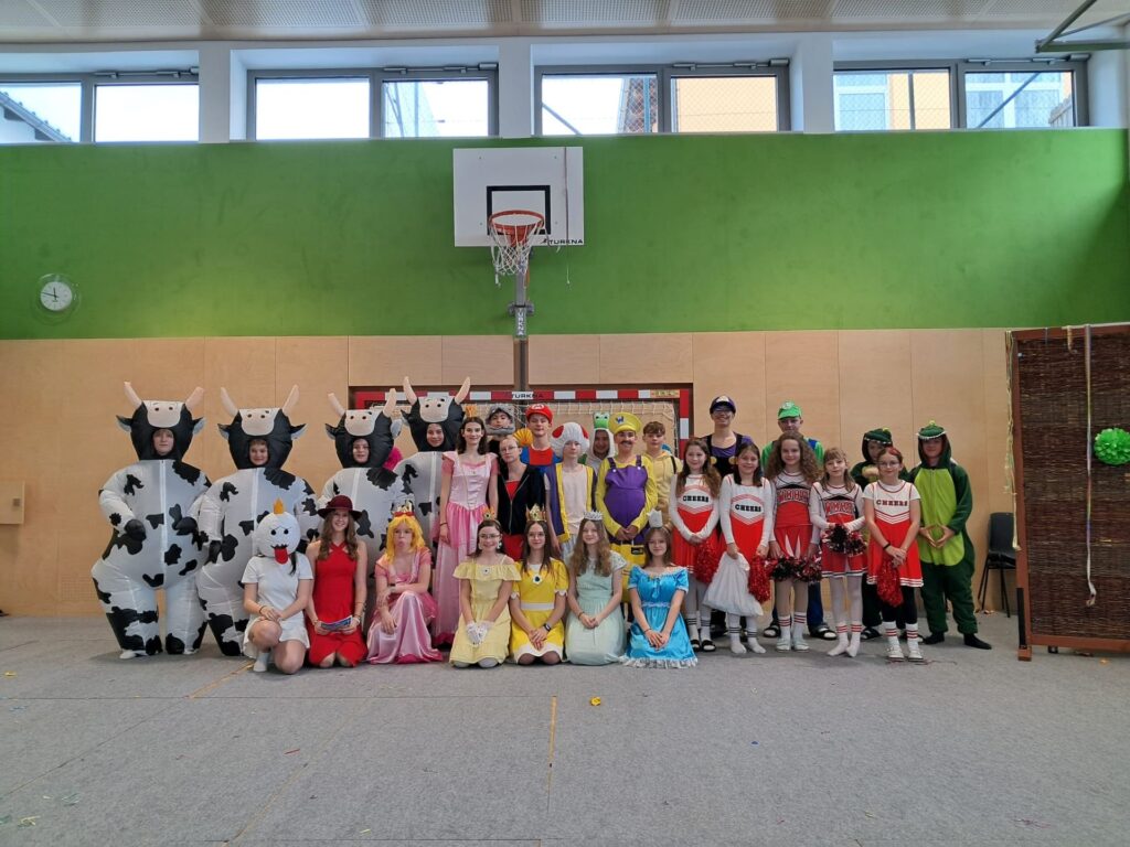 Am Faschingsdienstag fand wie jedes Jahr die traditionelle Faschingsfeier statt, die heuer vollständig von den Schülerinnen und Schülern der 4. Klasse selbst organisiert wurde. Von der Planung über Moderation und Musik bis hin zur Plakatgestaltung lag alles in ihrer Hand — ein eindrucksvoller Beweis für Engagement, Teamarbeit und Kreativität.