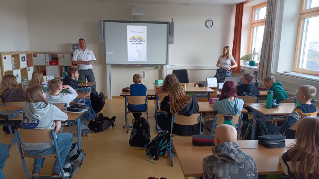 Am 10. 3. 2026 fand im Rahmen des BBO-Unterrichts das Wirtschaftskammerprogramm „Lehre-Respekt“ in der 3. Klasse statt. Eine Trainerin stellte die wichtigsten Teile der Homepage „Lehre-Respekt“ Link (auch für Eltern interessant): WKNÖ – Lehre? Respekt! Lehre? Respekt! vor, präsentierte verschiedenste Lehrberufe und die relevanten Bereiche der dualen Ausbildung (Lehre+Berufsschule), wie Dauer, Bezahlung, Aufstiegsmöglichkeiten und Lehre mit Matura. Markus Maurer (Fa. Farben Maurer), der als Firmenchef dabei war, ergänzte diese Infos aus der Sicht der Praxis, stellte seinen Betrieb vor und gab wertvolle Tipps für die Berufswahl.