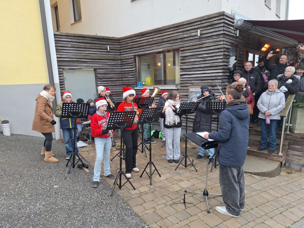 Bei den Aufführungen der heurigen Adventmärkten der Gemeinden Bad Traunstein und Schönbach gab es eine Prämiere: Das neu geformte Jugendblasorchester der Mittelschule, unter der Leitung von Schülerinnen und Schüler der 4. Klasse Mittelschule und den Musiklehrerinnen sowie Frau Lehrerin Hammerschmidt führte 2 Weihnachtslieder erstmalig auf. Weiters durften wir uns an weihnachtlichen Tanz- uns Gesangseinlagen erfreuen. In Schönbach war die Schule auch mit einem Standl im Klosterhof vertreten, die Schülerinnen und Schüler sowie die Lehrerinnen und Lehrer versorgten die Besucher und Besucherinnen mit Kinderpunsch, Glühwein und Klosterlaberln.