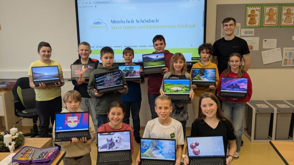 Am Freitag, den 5. Dezember 2025 bekamen die Schüler/innen der 1. Klasse die Laptops aus der Initiative Digitales Lernen überreicht. Die Freude war entsprechend groß. Eingesetzt werden die Geräte nicht nur im Pflichtgegenstand Digitale Grundbildung sondern – situationsbezogen – in fast allen Gegenständen.