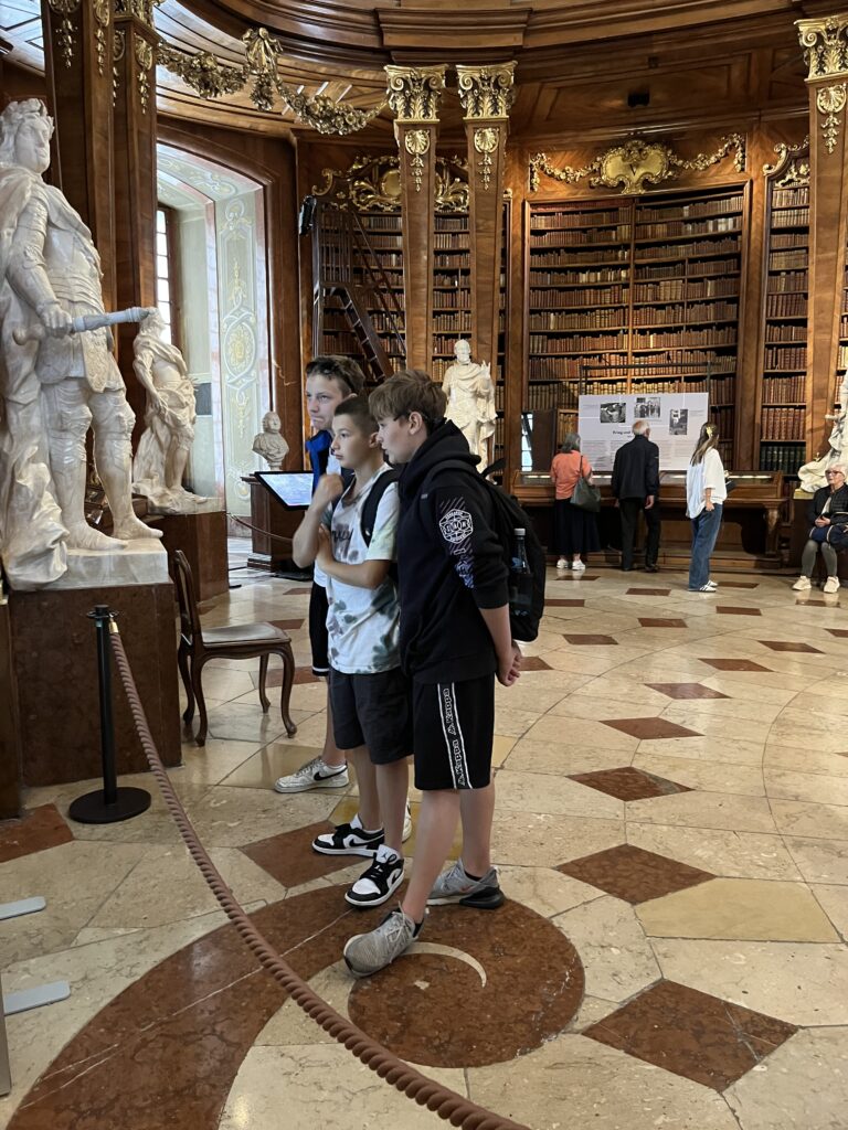 Am letzten Tag der Wienwoche besuchten wir am Vormittag die beeindruckende Karlskirche. Die barocke Architektur und die prachtvollen Fresken im Inneren waren ein wahrhaftiges Highlight. Anschließend erkundeten wir den Prunksaal der Nationalbibliothek, wo wir von der beeindruckenden Sammlung historischer Bücher und der majestätischen Raumgestaltung begeistert waren.