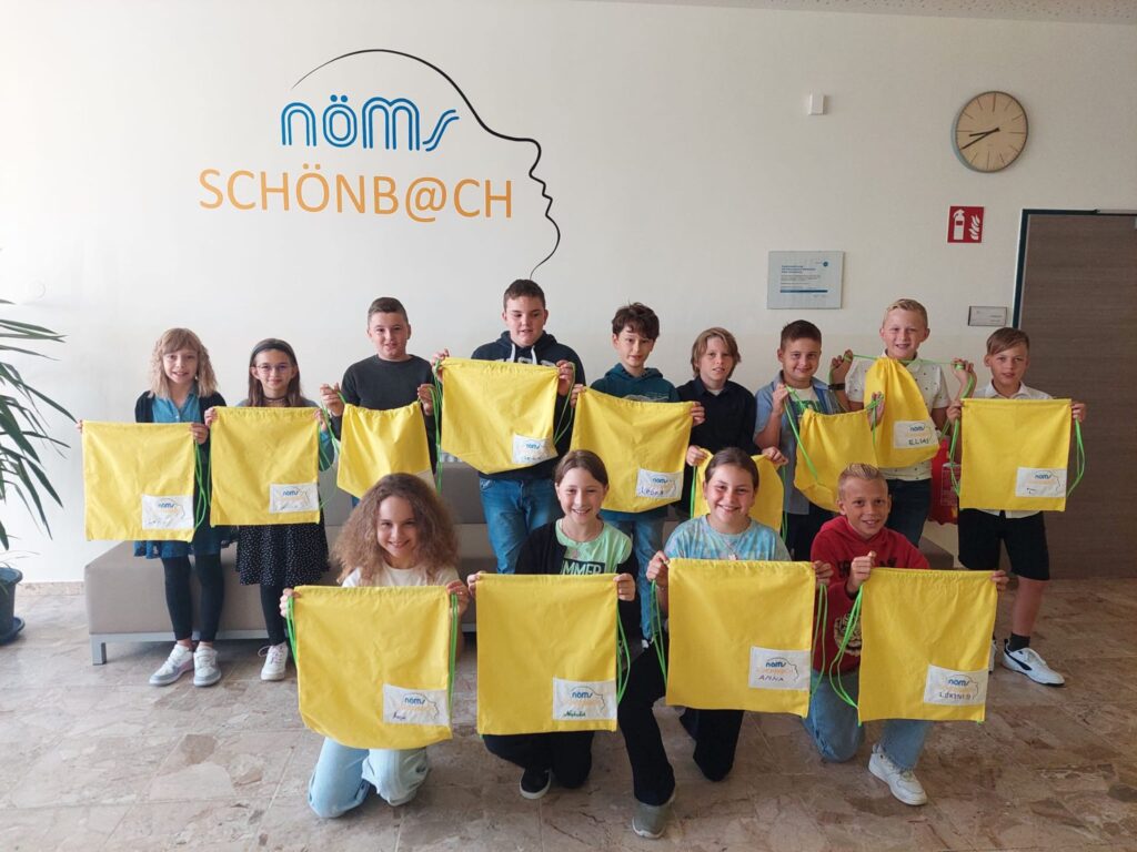 Wir heißen die Schüler/innen der 1. Klasse herzlich Willkommen bei uns in der MS Schönbach. Als Geschenk bekamen die Kinder einheitliche Turnsackerl. Man kann erkennen, dass sie sich sehr darüber gefreut haben.